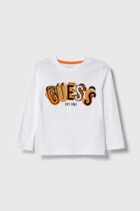 Дитячий бавовняний лонгслів Guess колір білий з аплікацією (3601605)