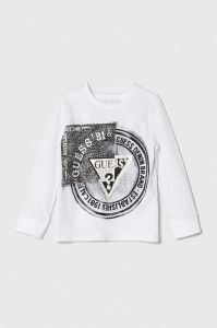 Дитячий бавовняний лонгслів Guess колір білий з принтом (3523270)