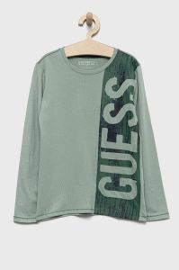 Дитячий бавовняний лонгслів Guess колір бірюзовий з принтом (2512453)