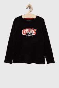 Дитячий бавовняний лонгслів Guess колір чорний з принтом (3327620)