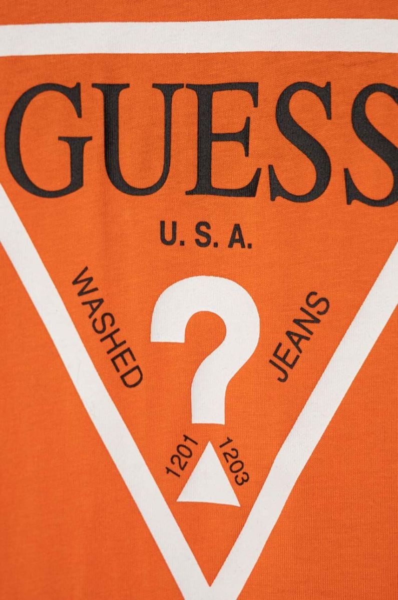 Дитячий бавовняний лонгслів Guess колір помаранчевий з принтом (3362584)