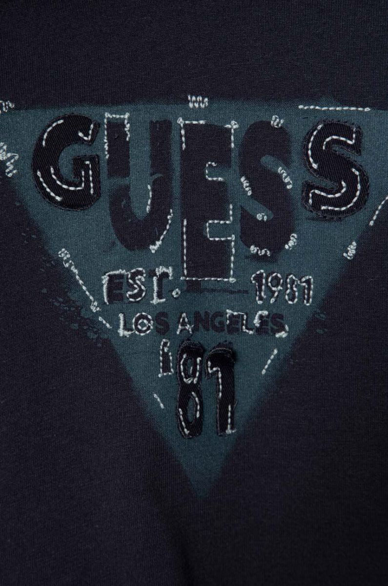Дитячий бавовняний лонгслів Guess колір синій візерунок (3500197)