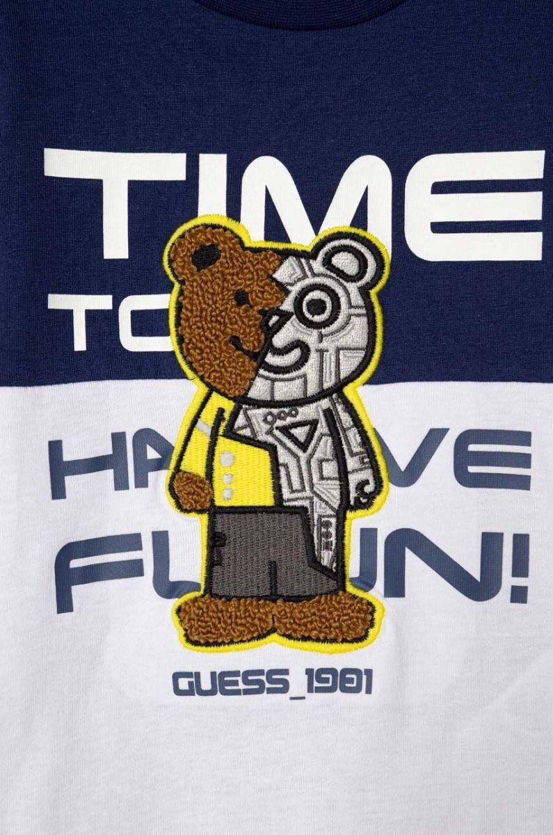 Дитячий бавовняний лонгслів Guess колір синій візерунок (3601626)