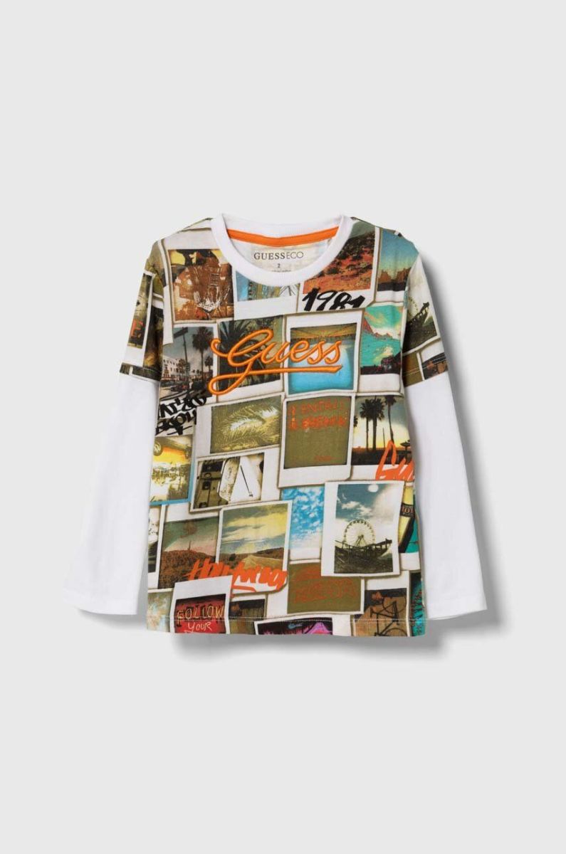 Дитячий бавовняний лонгслів Guess візерунок колір барвистий (3601600)