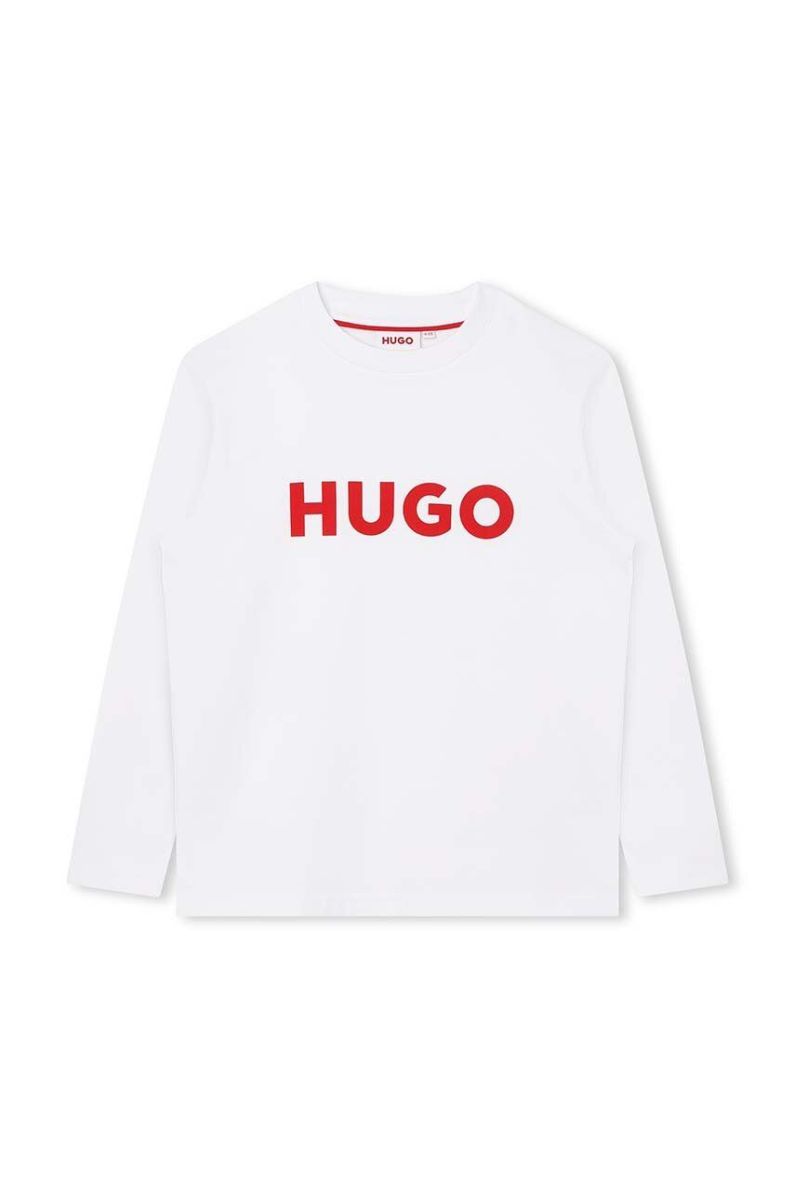 Дитячий бавовняний лонгслів HUGO колір білий з принтом (3423928)