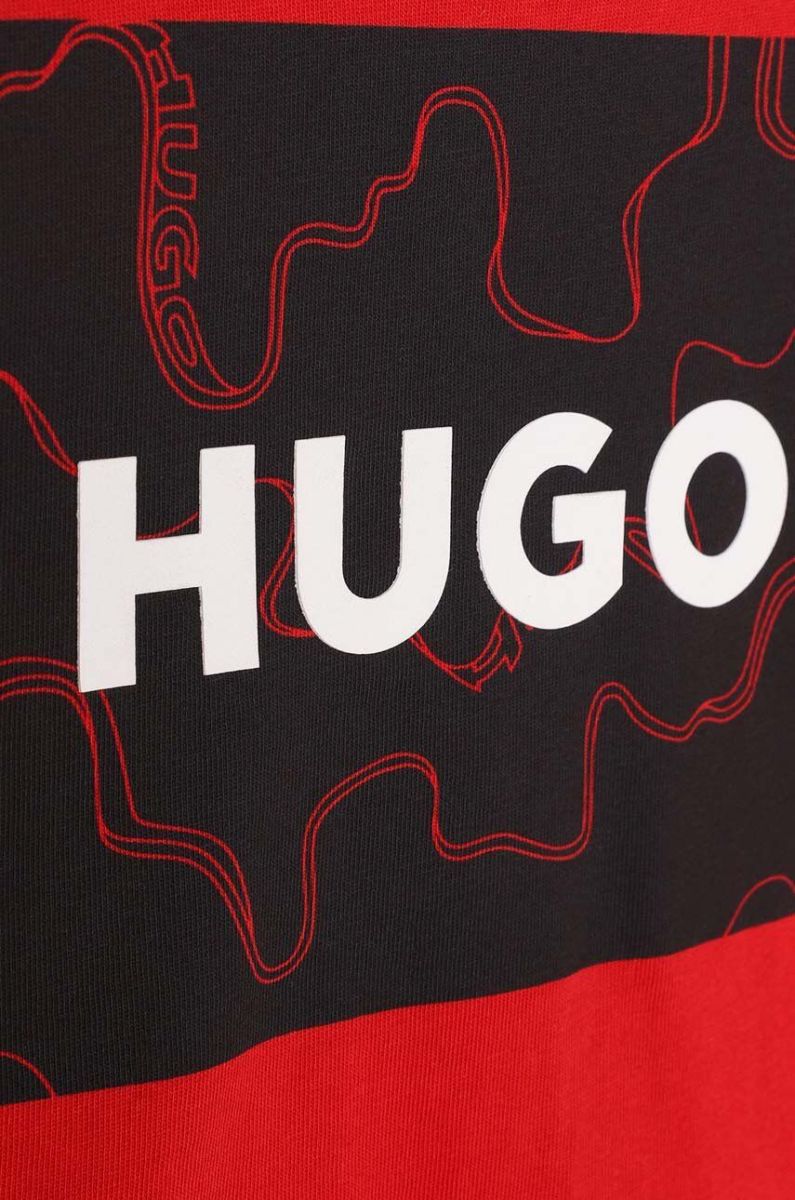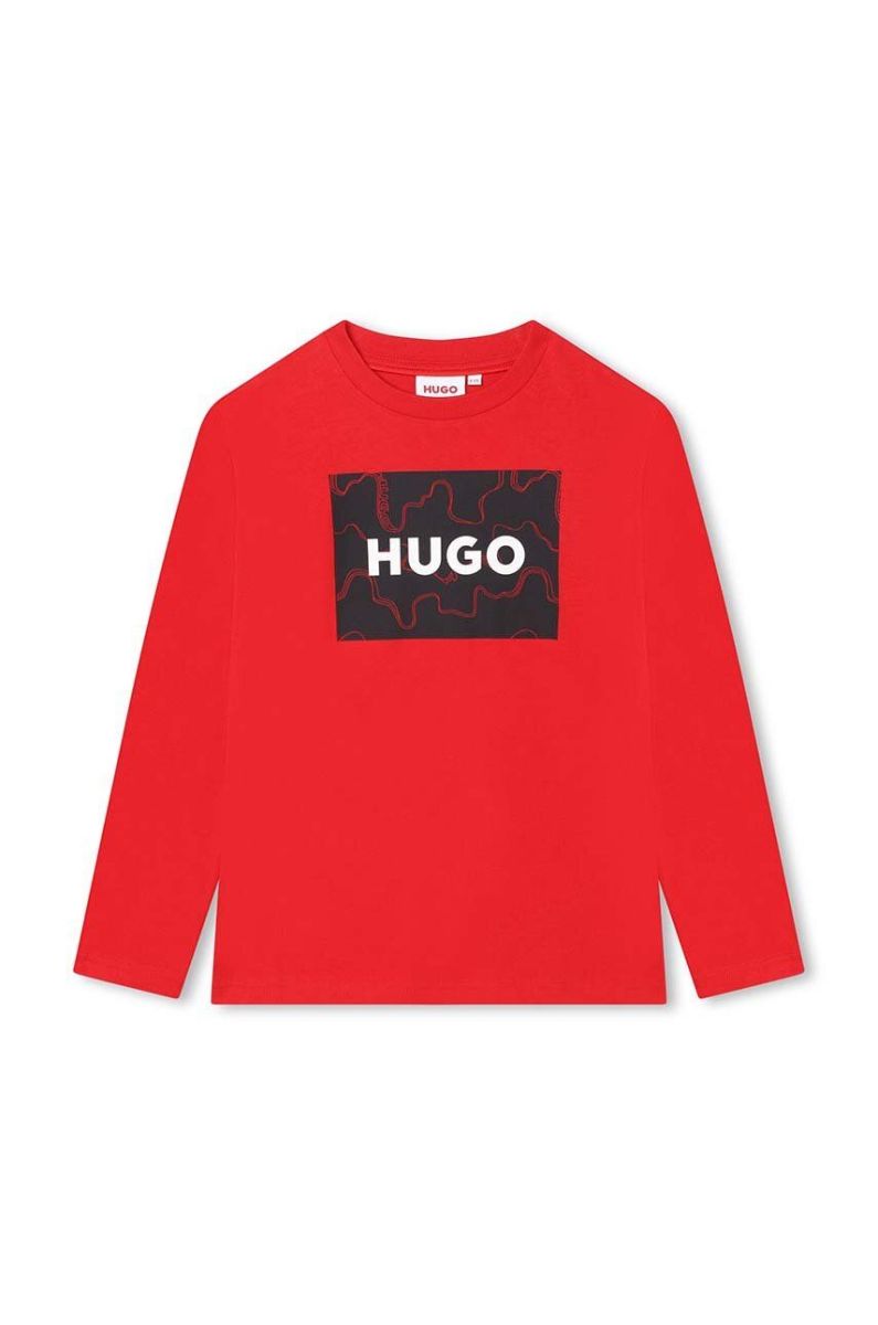 Дитячий бавовняний лонгслів HUGO колір червоний з принтом (3511618)