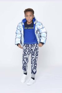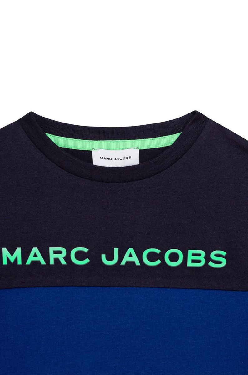 Дитячий бавовняний лонгслів Marc Jacobs колір синій візерунок