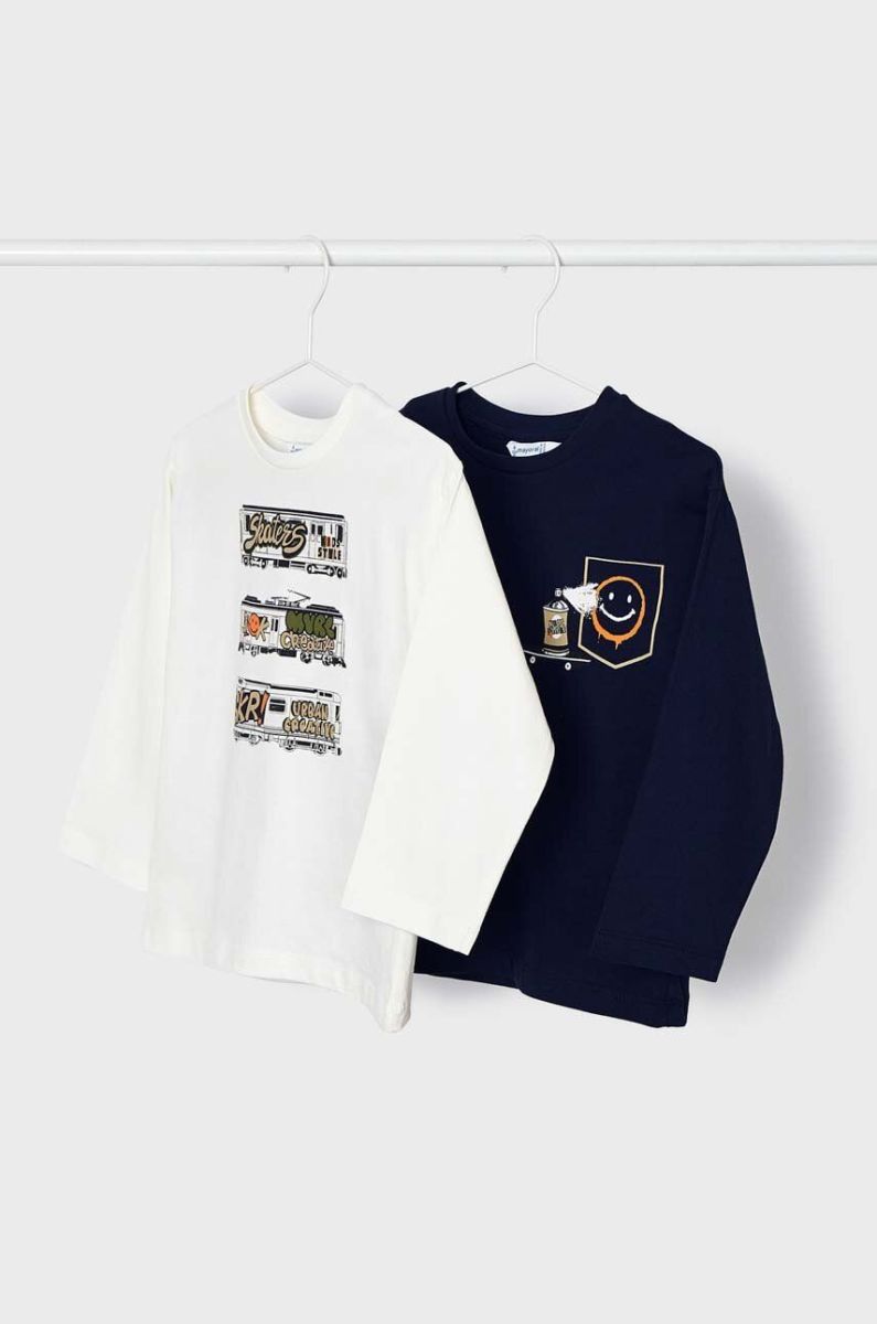 Дитячий бавовняний лонгслів Mayoral 2-pack колір синій з принтом (3407881)