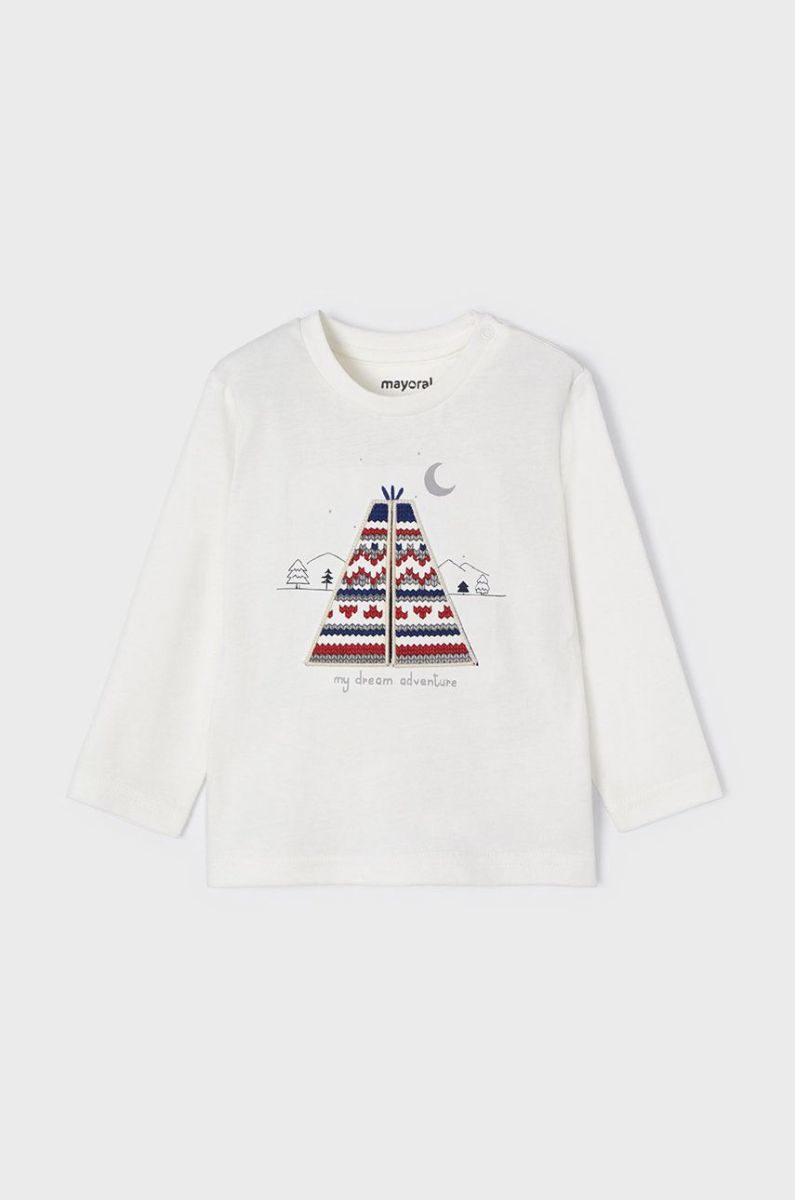 Дитячий бавовняний лонгслів Mayoral колір білий з принтом (2490202)