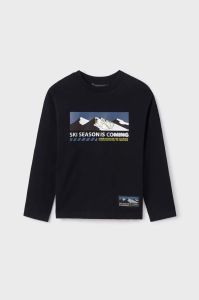 Дитячий бавовняний лонгслів Mayoral колір чорний з принтом (3408058)