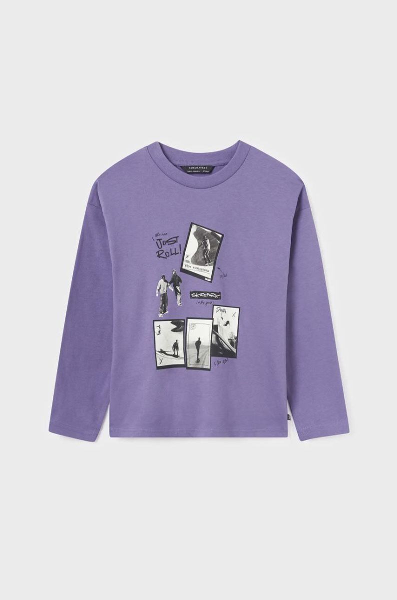 Дитячий бавовняний лонгслів Mayoral колір фіолетовий з принтом (3414158)