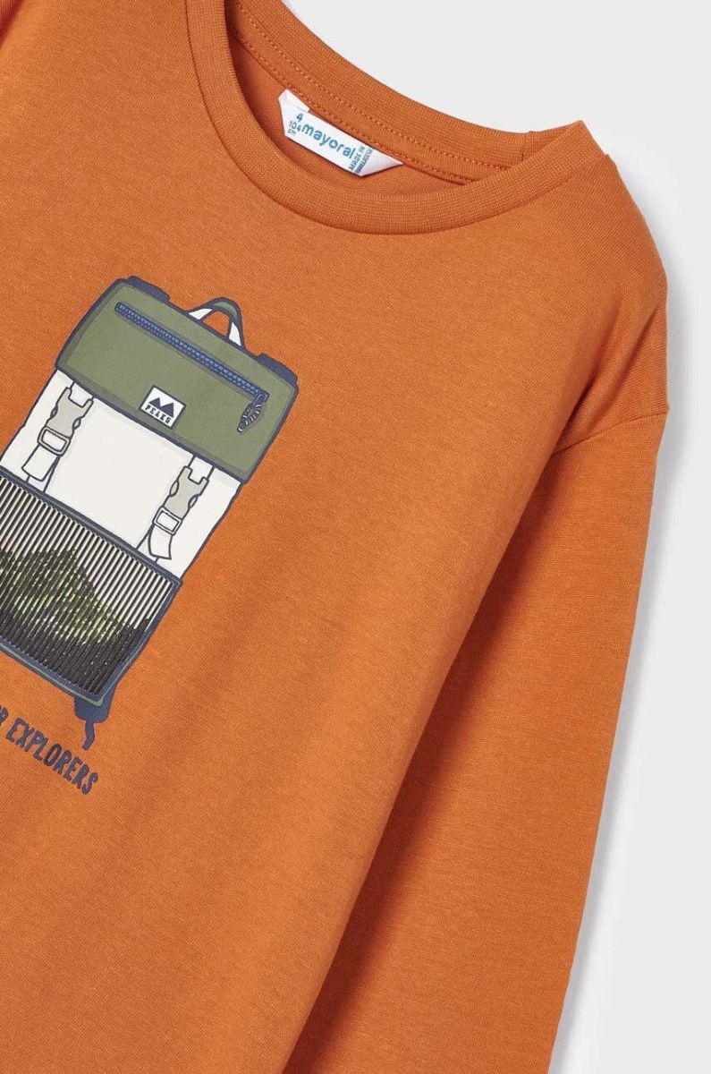 Дитячий бавовняний лонгслів Mayoral колір помаранчевий з принтом (3407709)
