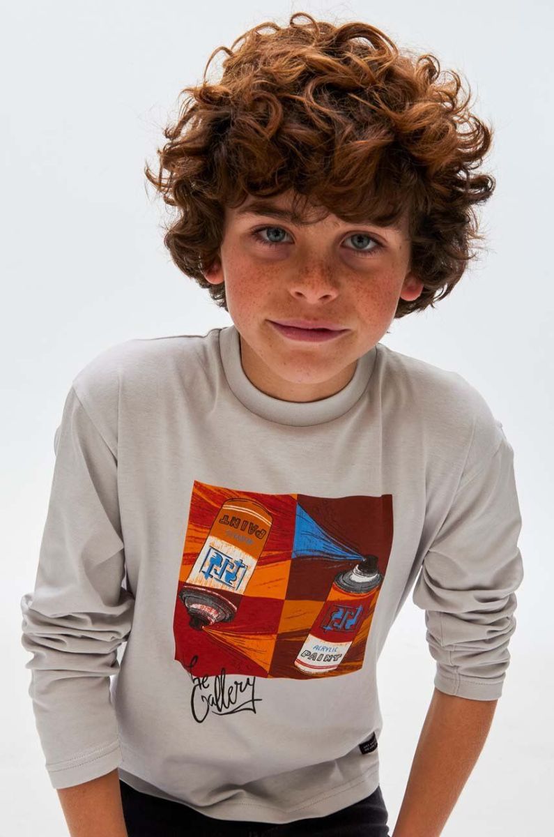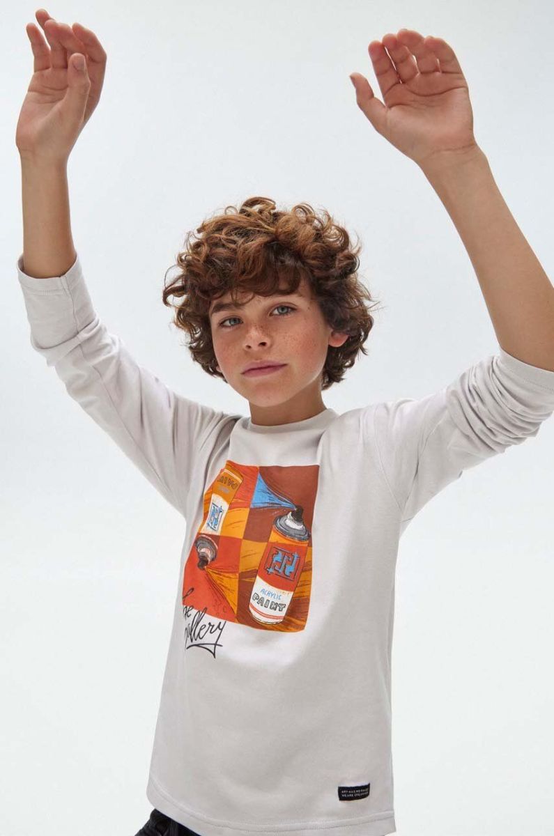 Дитячий бавовняний лонгслів Mayoral колір помаранчевий з принтом (3408102)