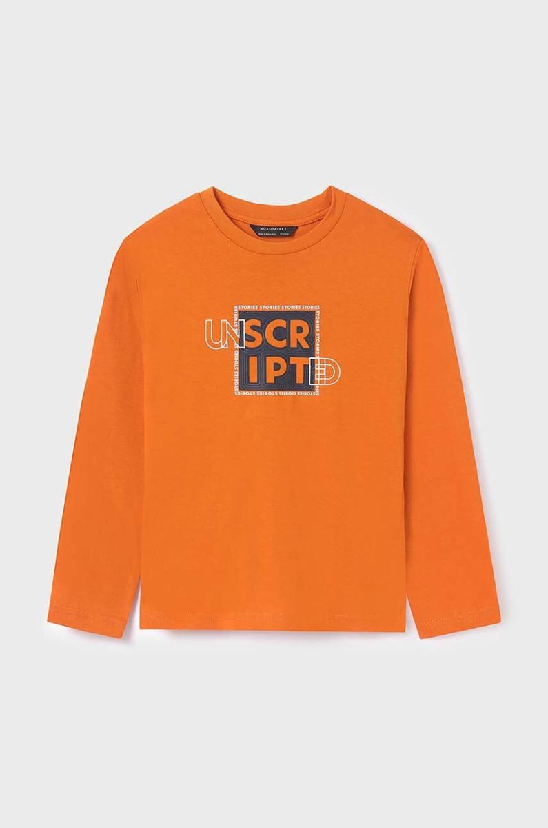 Дитячий бавовняний лонгслів Mayoral колір помаранчевий з принтом (3418939)