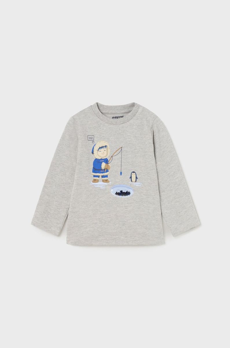 Дитячий бавовняний лонгслів Mayoral колір сірий з принтом (2503456)