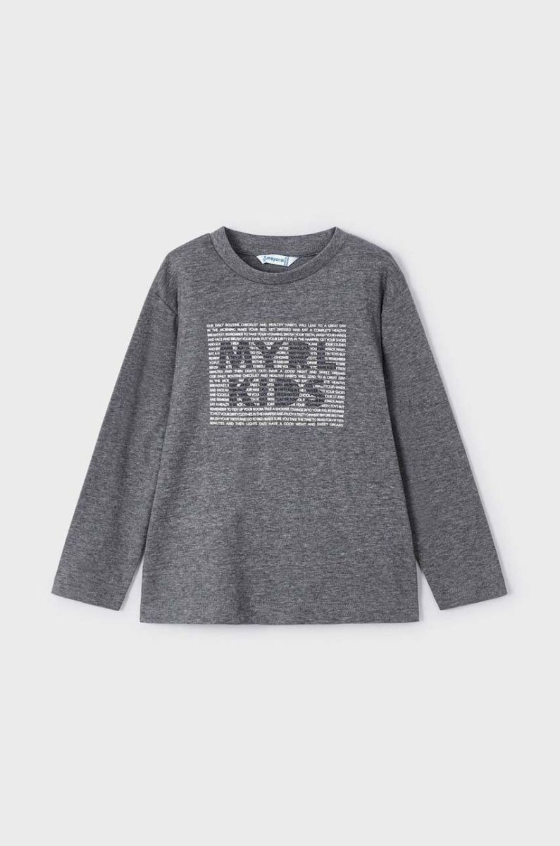 Дитячий бавовняний лонгслів Mayoral колір сірий з принтом (3407423)