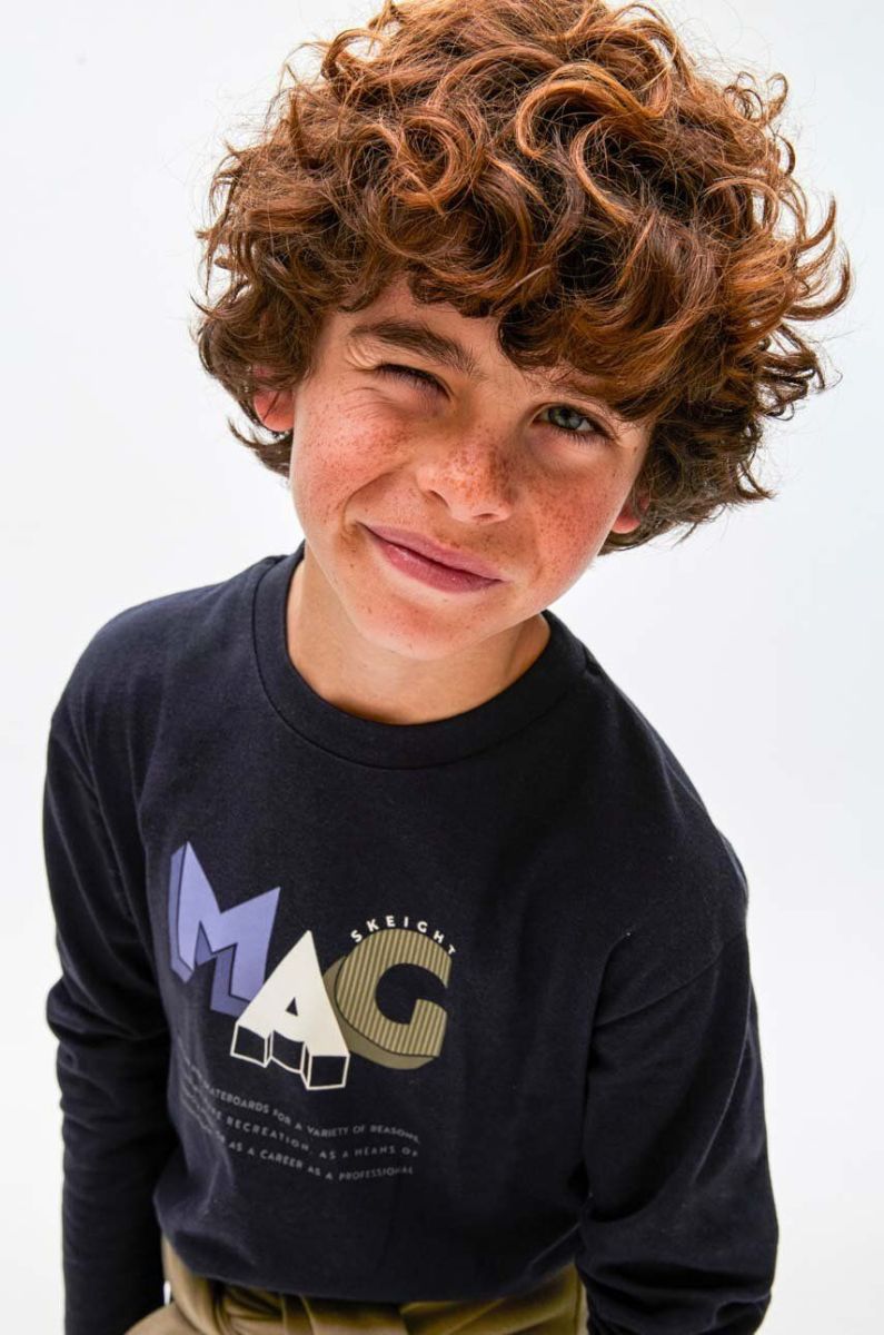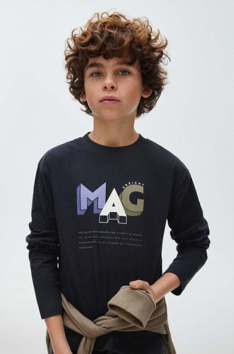 Дитячий бавовняний лонгслів Mayoral колір сірий з принтом (3437261)