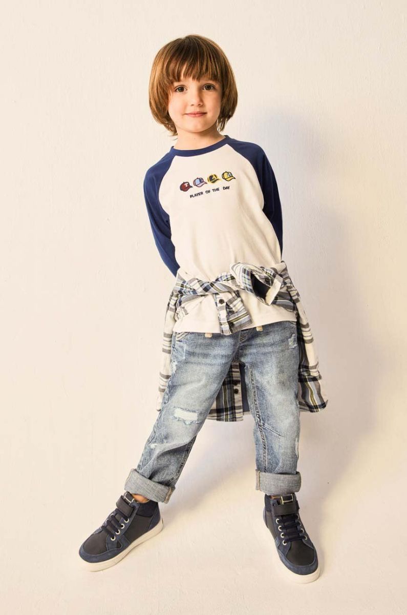 Дитячий бавовняний лонгслів Mayoral візерунок колір блакитний