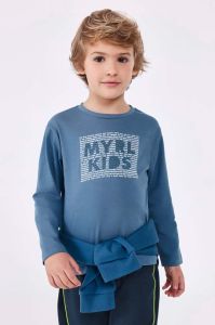 Дитячий бавовняний лонгслів Mayoral з принтом колір блакитний (3407353)