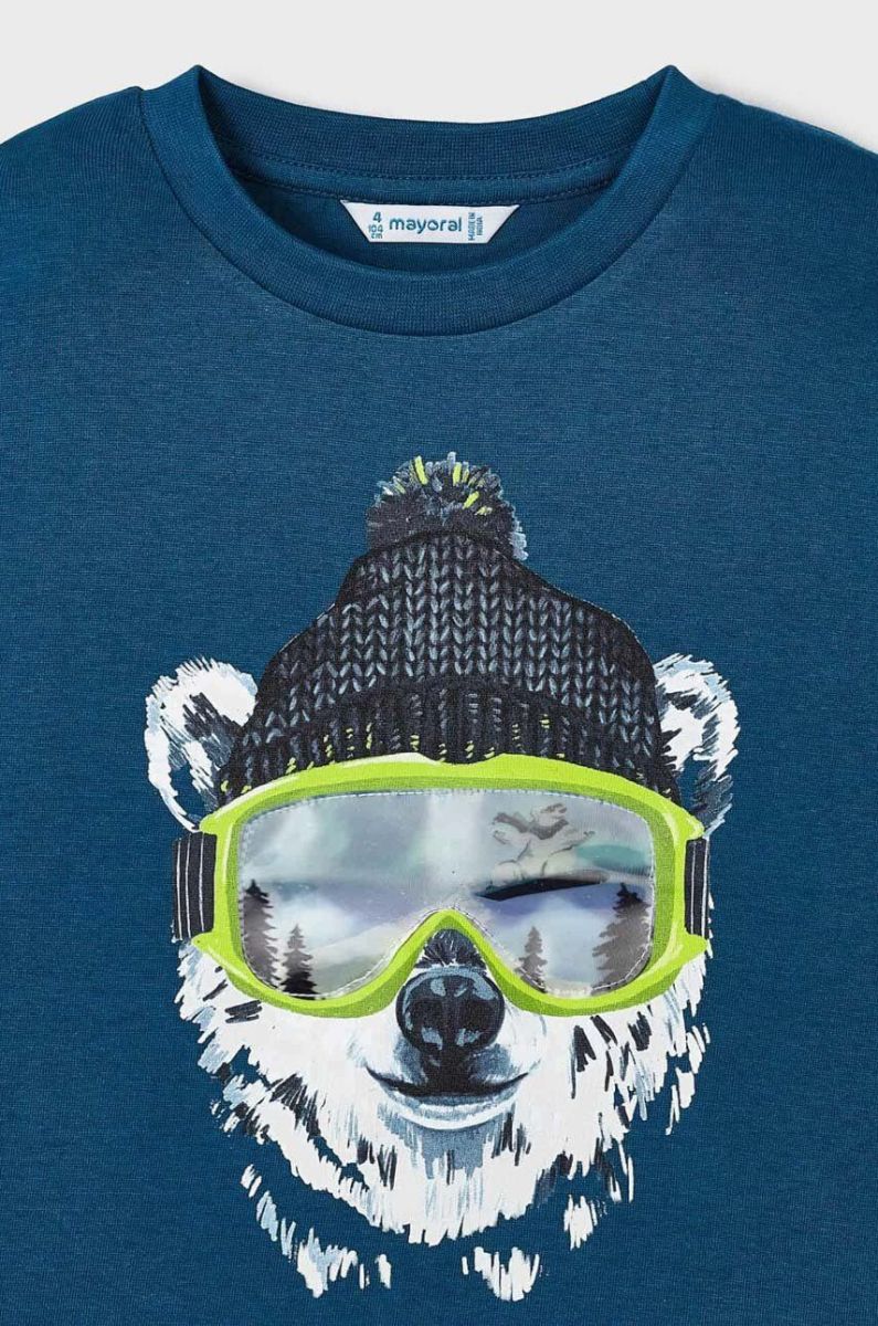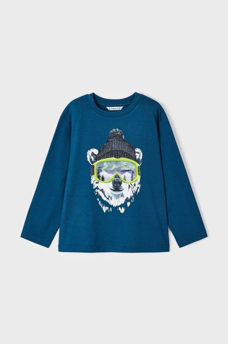 Дитячий бавовняний лонгслів Mayoral з принтом колір блакитний (3407889)