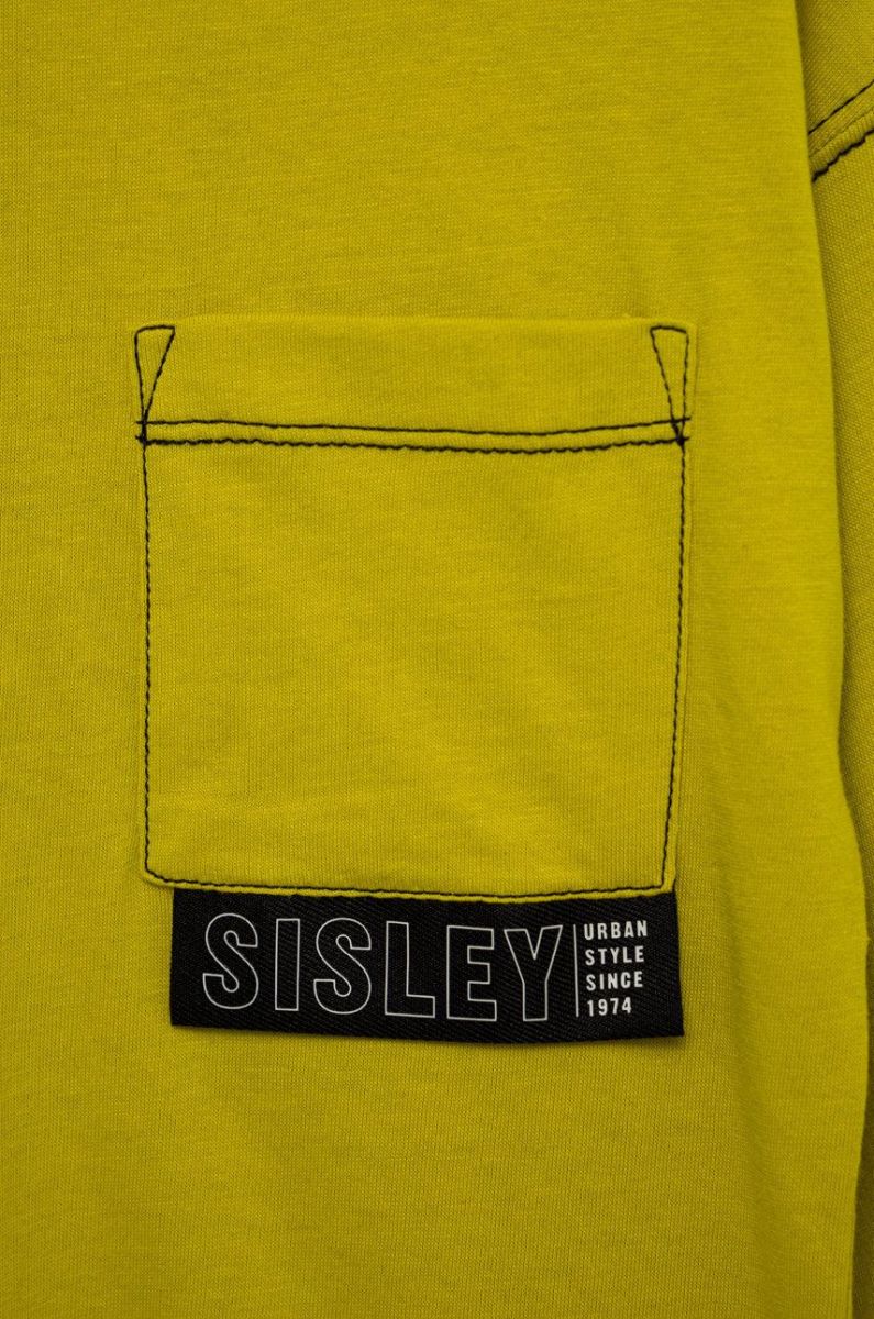Дитячий бавовняний лонгслів Sisley колір зелений однотонний