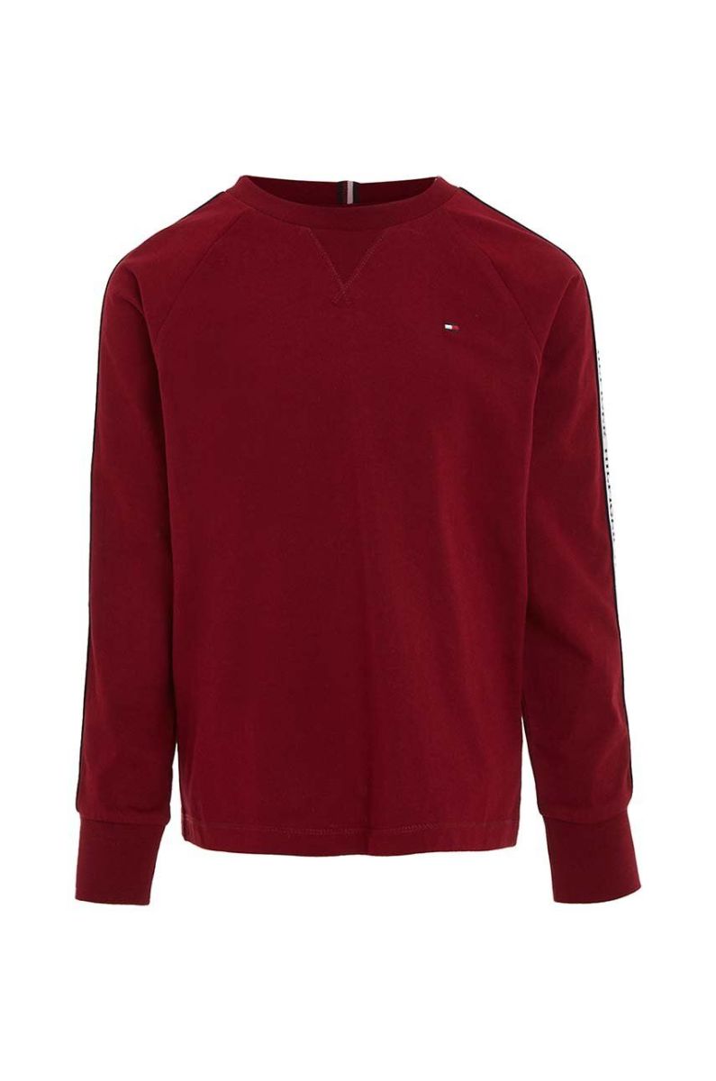 Дитячий бавовняний лонгслів Tommy Hilfiger колір червоний візерунок
