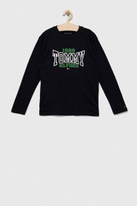 Дитячий бавовняний лонгслів Tommy Hilfiger колір синій з принтом (3316173)