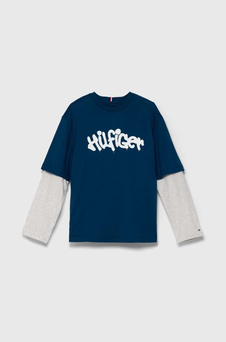 Дитячий бавовняний лонгслів Tommy Hilfiger колір синій з принтом (3570984)