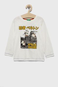 Дитячий бавовняний лонгслів United Colors of Benetton колір білий з принтом (2558212)