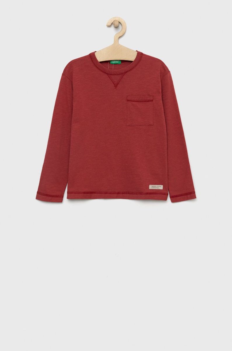 Дитячий бавовняний лонгслів United Colors of Benetton колір червоний однотонний (2713440)