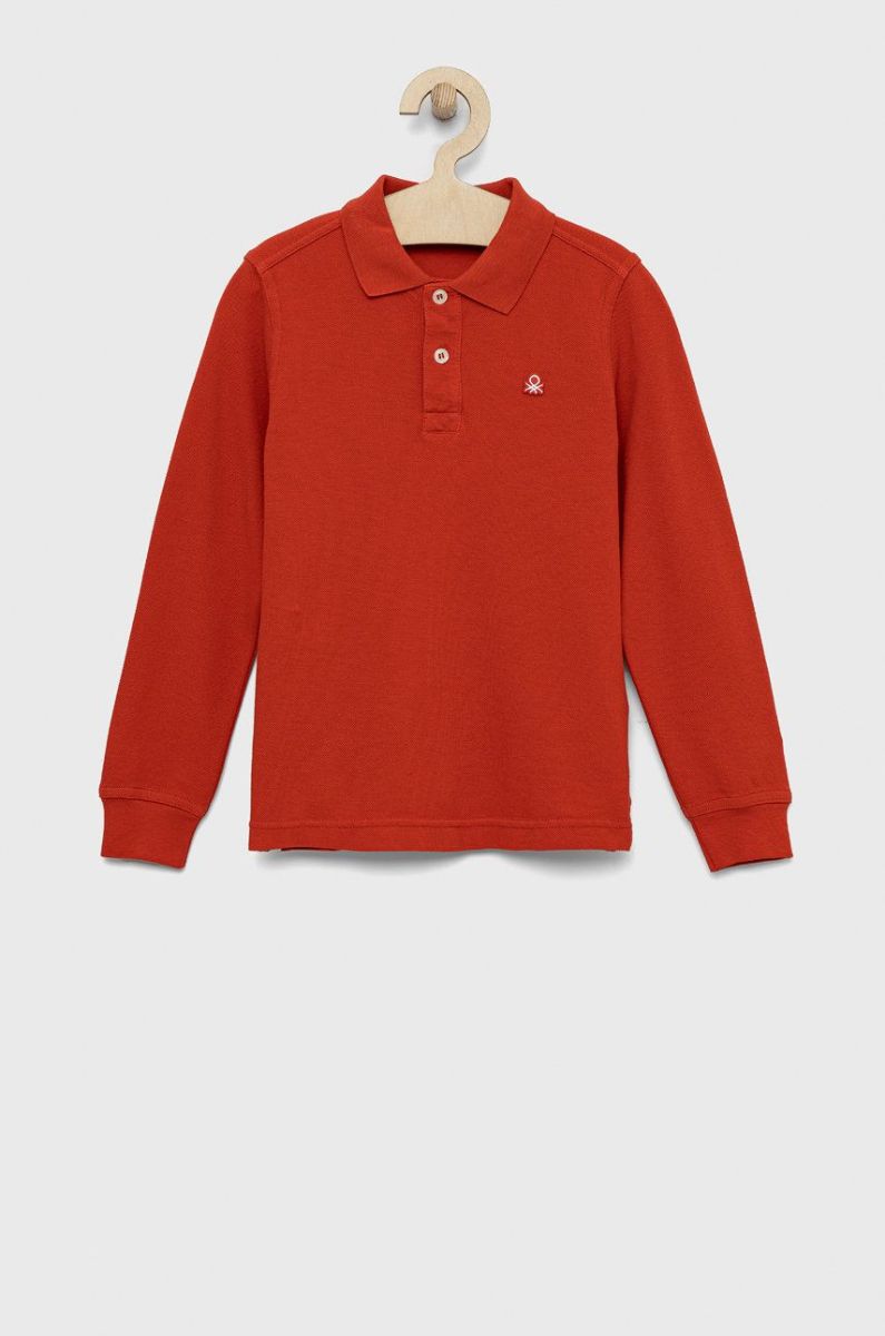 Дитячий бавовняний лонгслів United Colors of Benetton колір червоний однотонний (2732817)