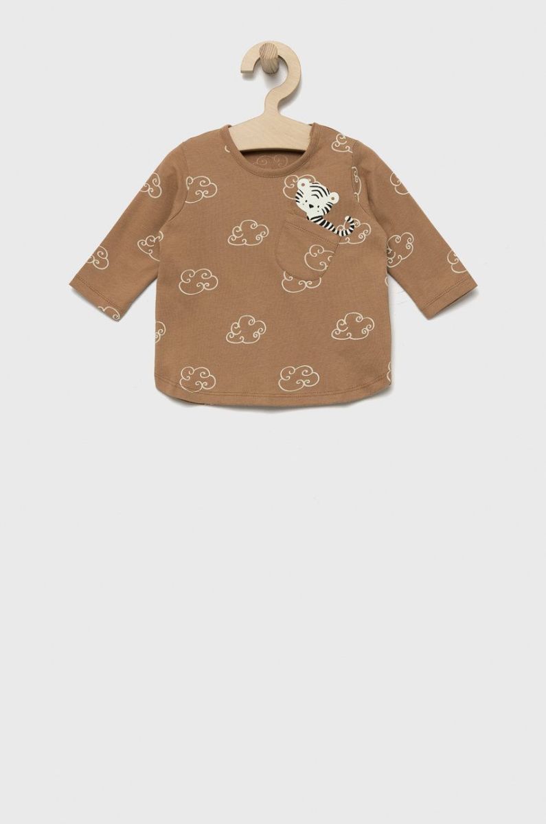 Дитячий бавовняний лонгслів United Colors of Benetton колір коричневий візерунок