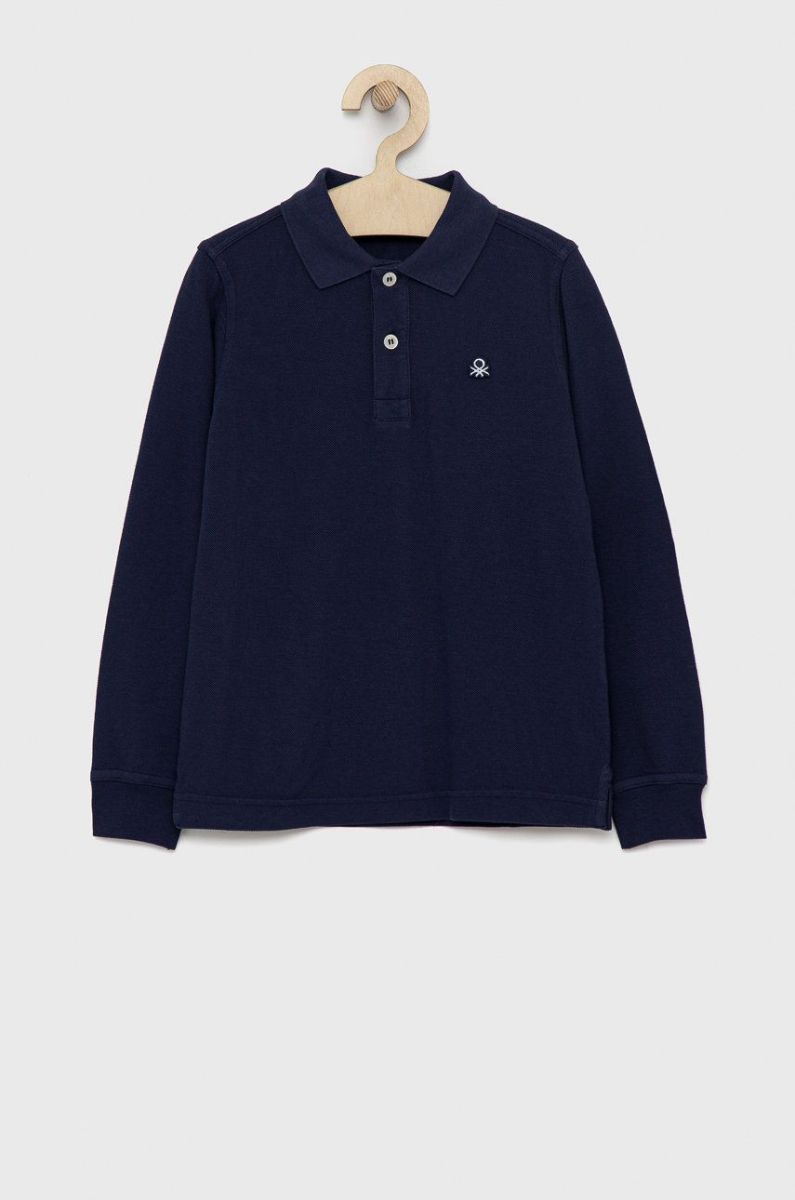 Дитячий бавовняний лонгслів United Colors of Benetton колір синій однотонний (2712902)