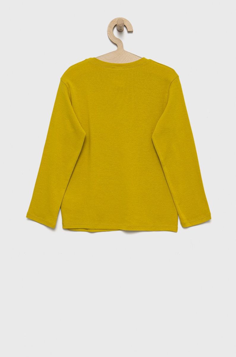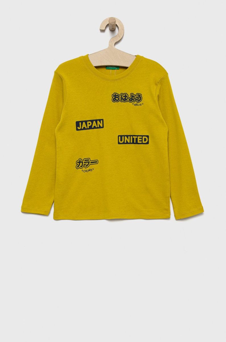 Дитячий бавовняний лонгслів United Colors of Benetton колір зелений з принтом (2538303)