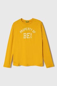 Дитячий бавовняний лонгслів United Colors of Benetton колір жовтий з принтом (3496334)