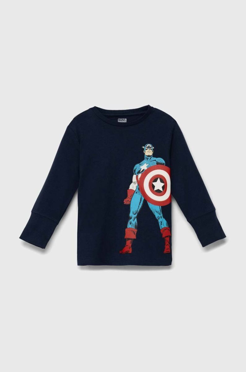 Дитячий бавовняний лонгслів zippy x Marvel колір синій з принтом