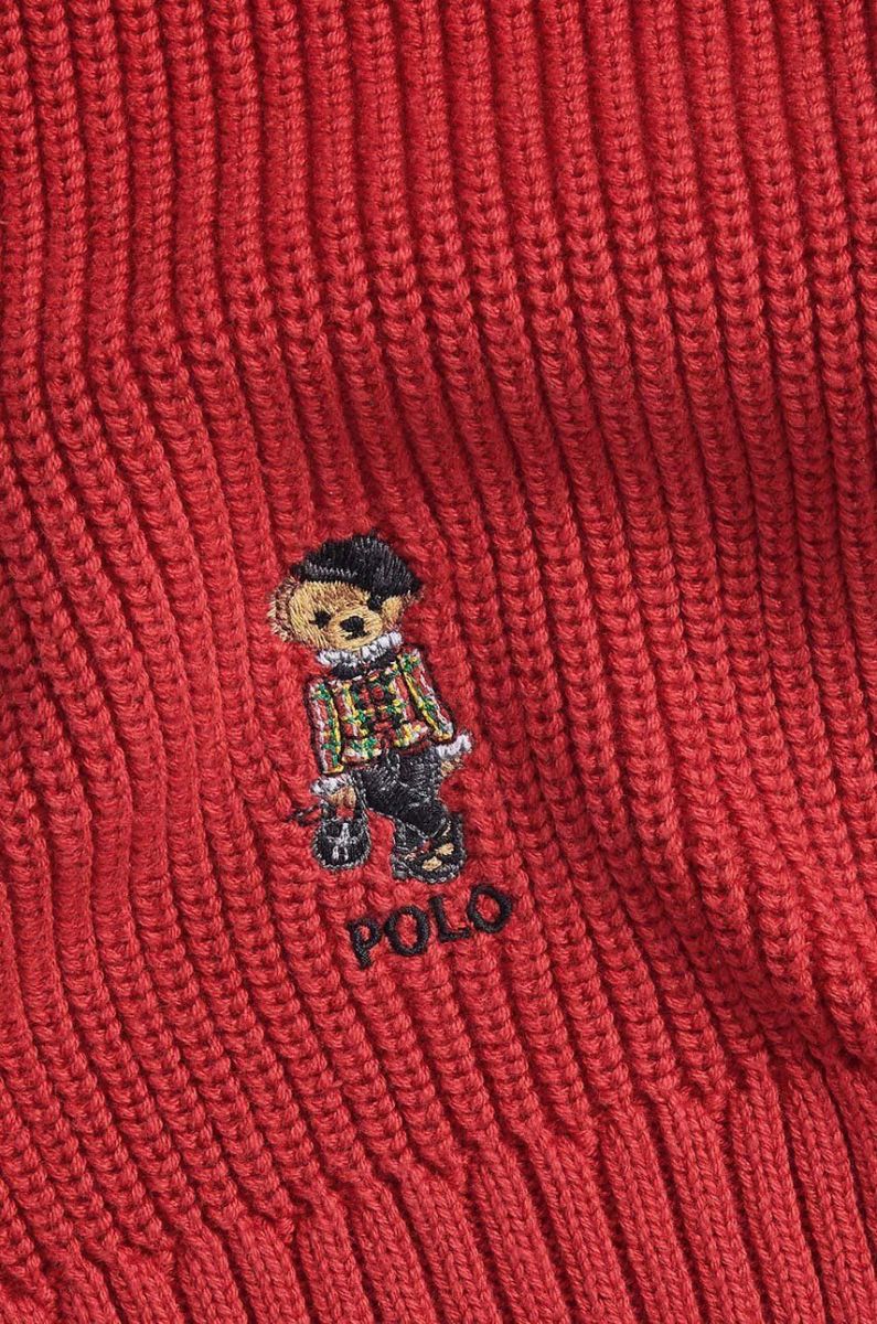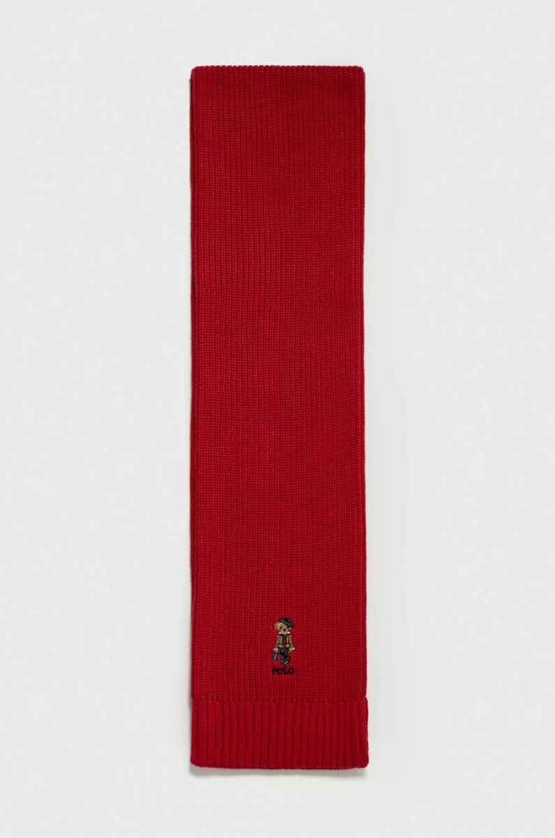 Дитячий бавовняний шарф Polo Ralph Lauren колір червоний однотонний