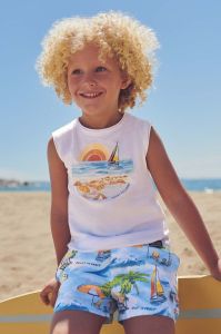Дитячий бавовняний топ Mayoral колір білий з принтом