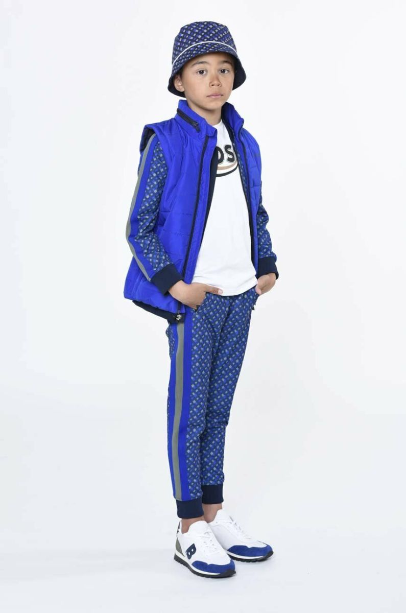 Дитячий двосторонній бавовняний капелюх BOSS колір синій з бавовни