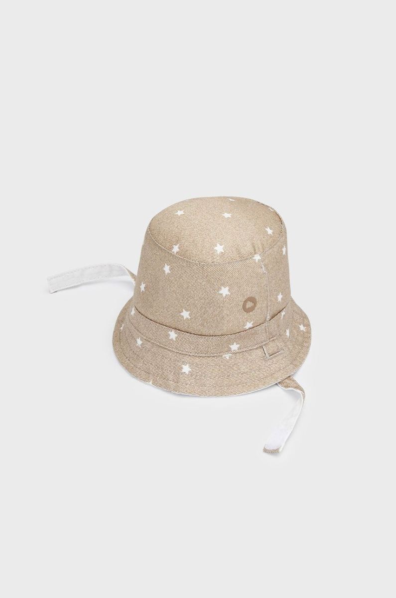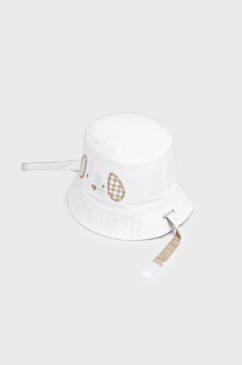 Капелюх із колекції Mayoral Newborn. Модель з вузьким краєм, виготовлена із матеріалу з принтом.