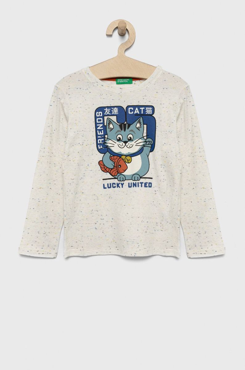 Дитячий лонгслів United Colors of Benetton колір білий з принтом