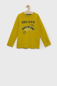 Дитячий лонгслів United Colors of Benetton колір жовтий з принтом