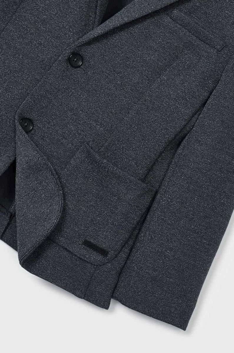 Дитяча піджак з колекції Mayoral виконаний із узорної тканини. Завдяки вмісту поліестеру матеріал є більш стійким до заломів.