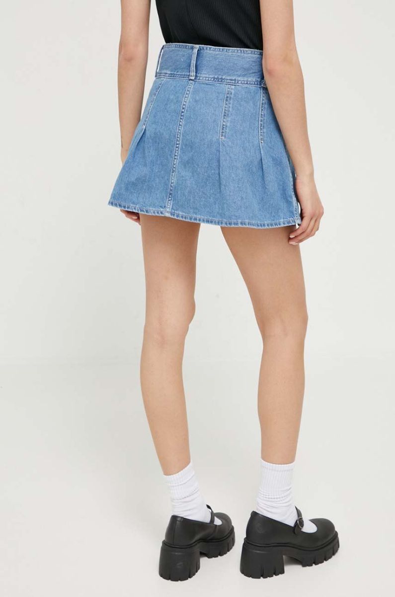 Джинсова бавовняна спідниця Tommy Jeans mini розкльошена колір блакитний