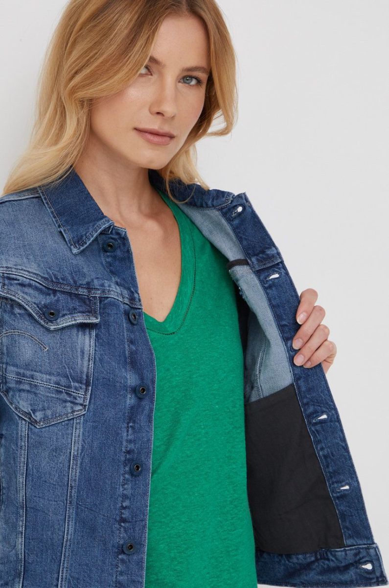 Джинсова куртка G-Star Raw жіноча перехідна колір блакитний