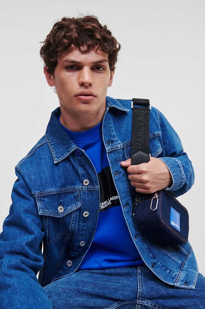 Джинсова куртка Karl Lagerfeld Jeans чоловіча перехідна колір блакитний