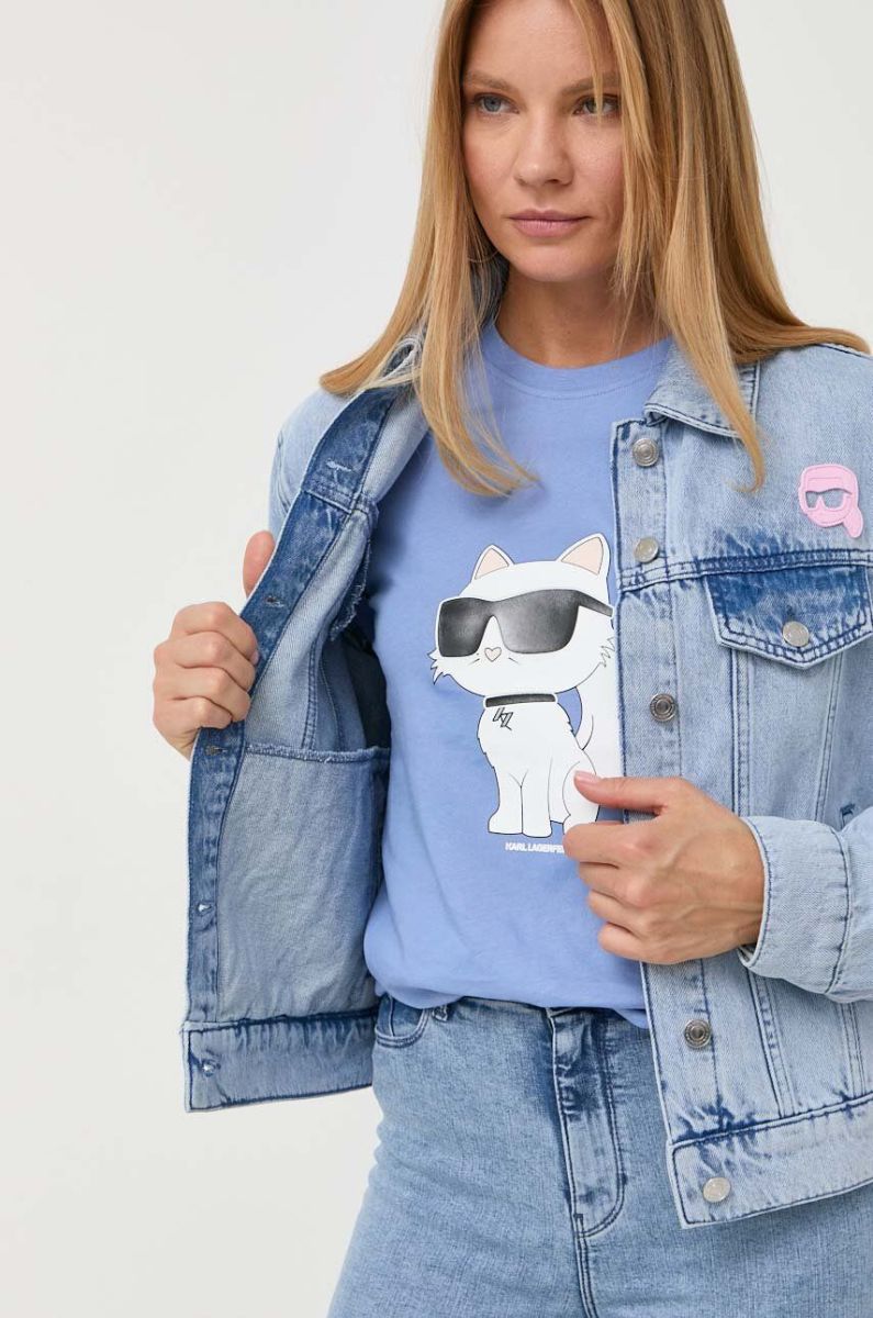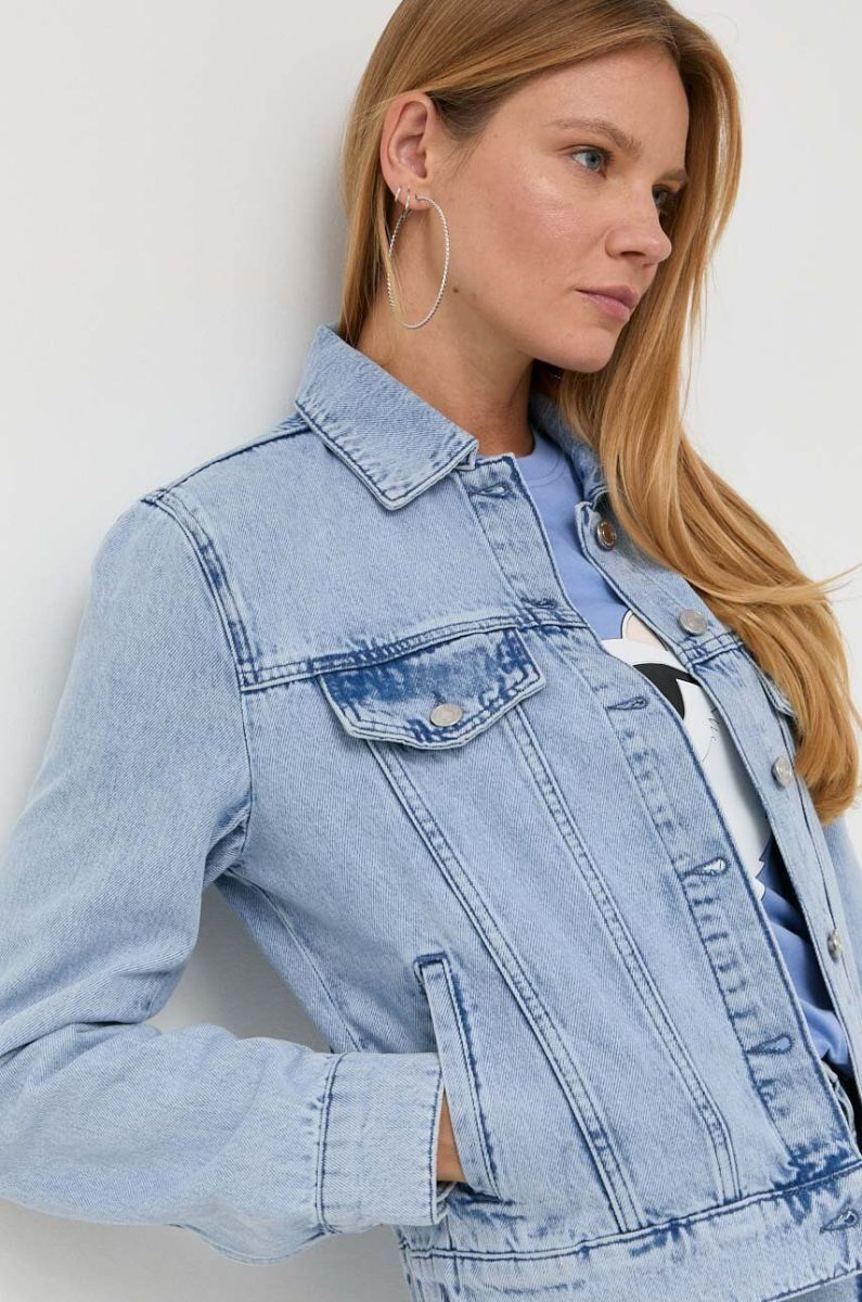 Джинсова куртка Karl Lagerfeld жіноча перехідна колір блакитний