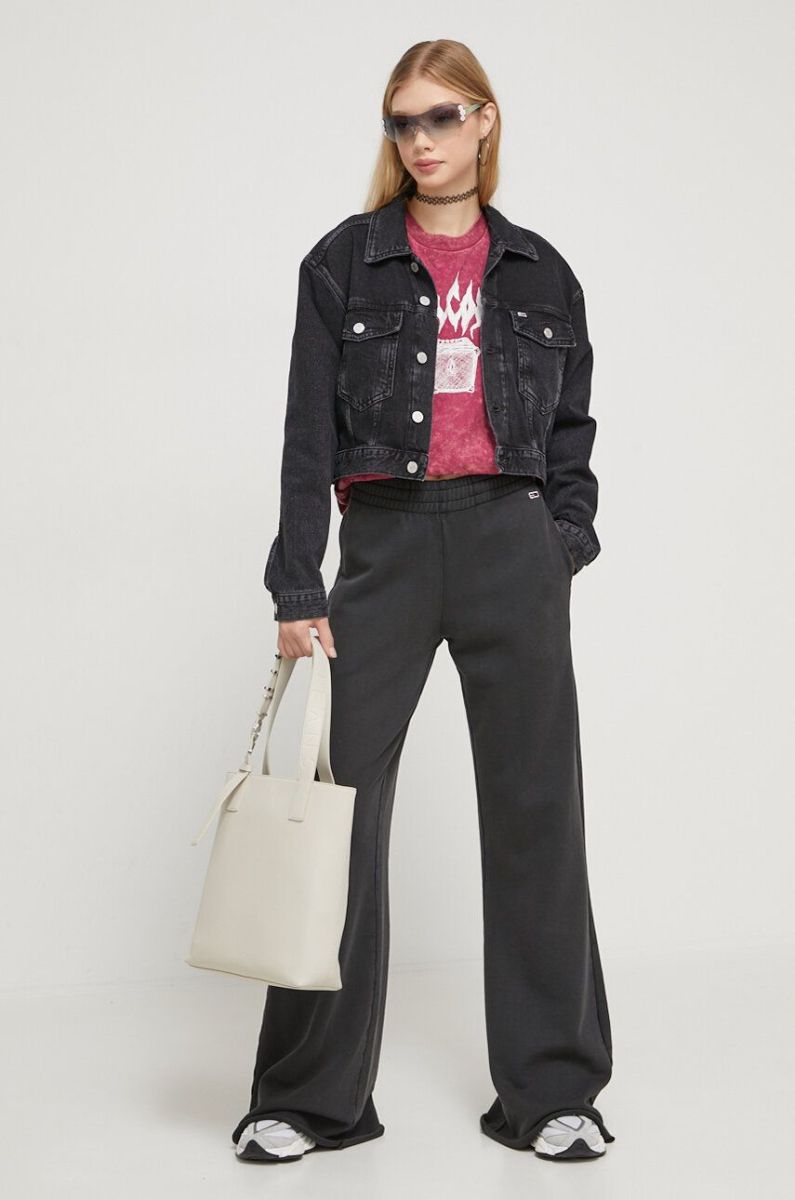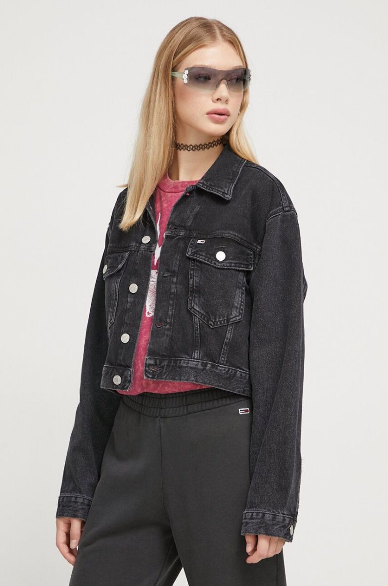 Джинсова куртка Tommy Jeans жіноча колір чорний перехідна oversize (3602059)