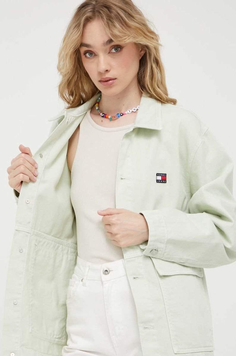 Джинсова куртка Tommy Jeans жіноча колір зелений перехідна oversize