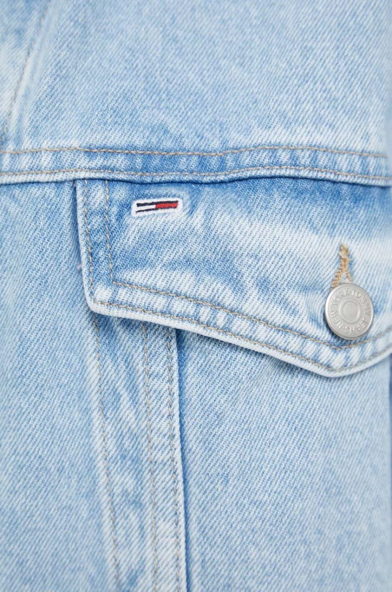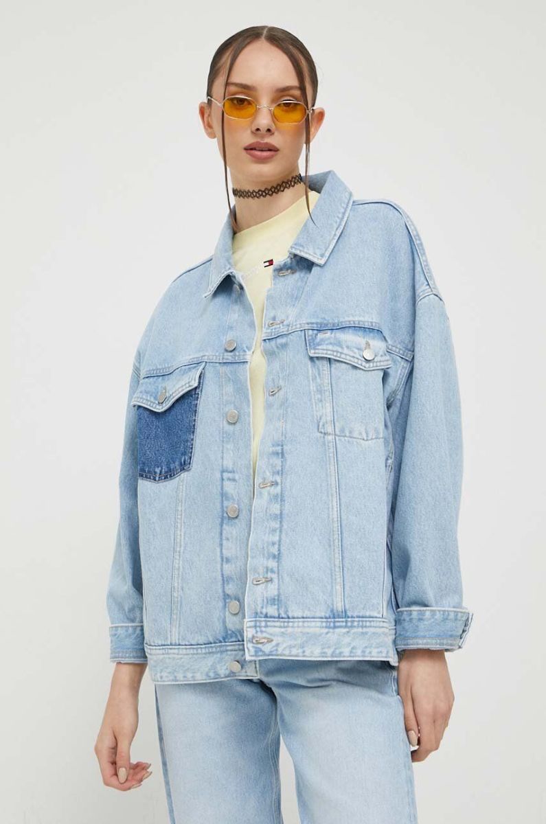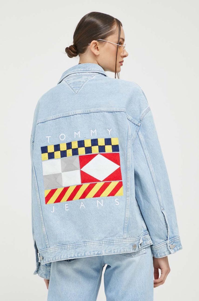 Джинсова куртка Tommy Jeans жіноча перехідна oversize колір блакитний (3369593)